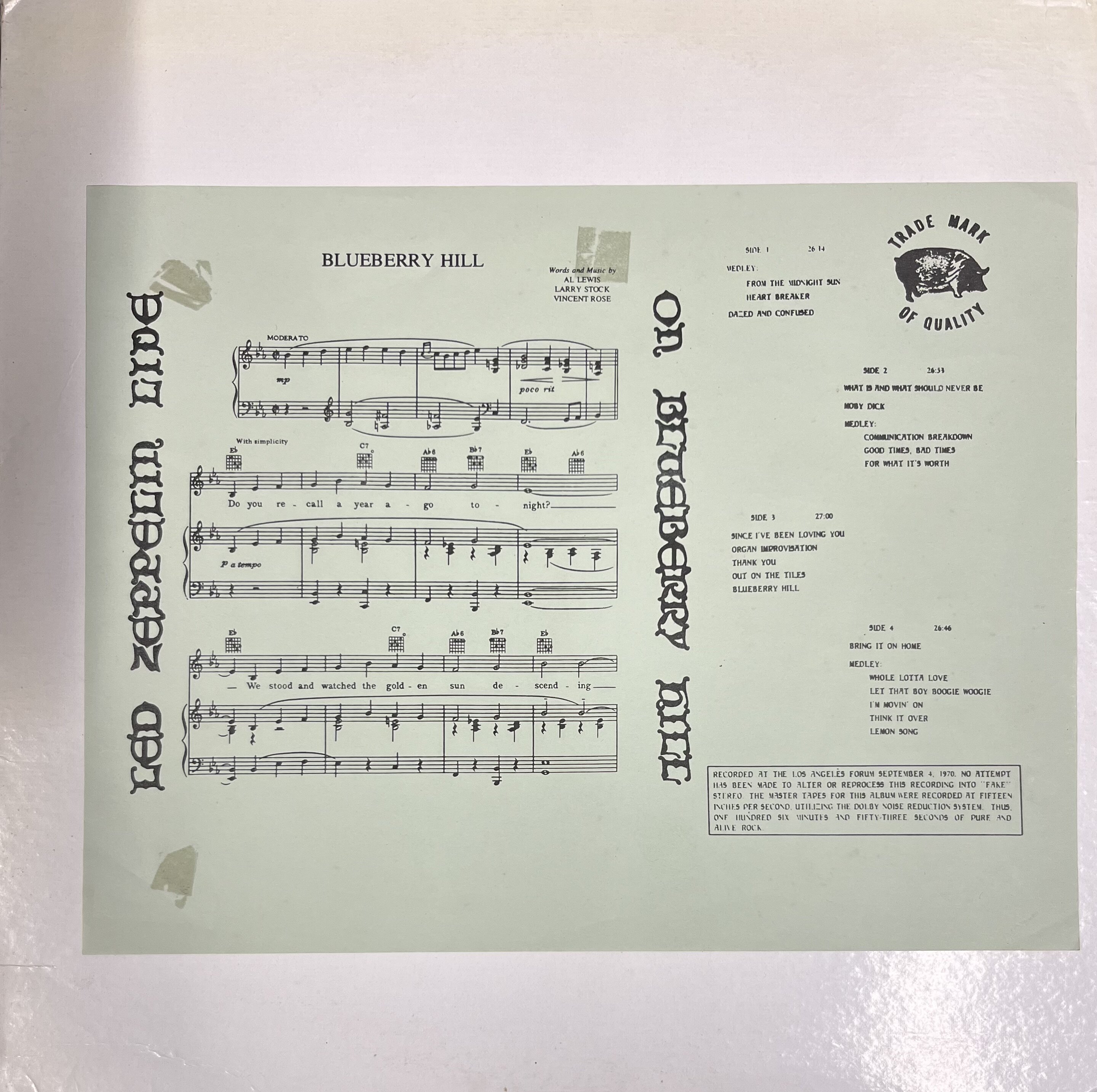 - Only version of led zep singing Blueberry Hill